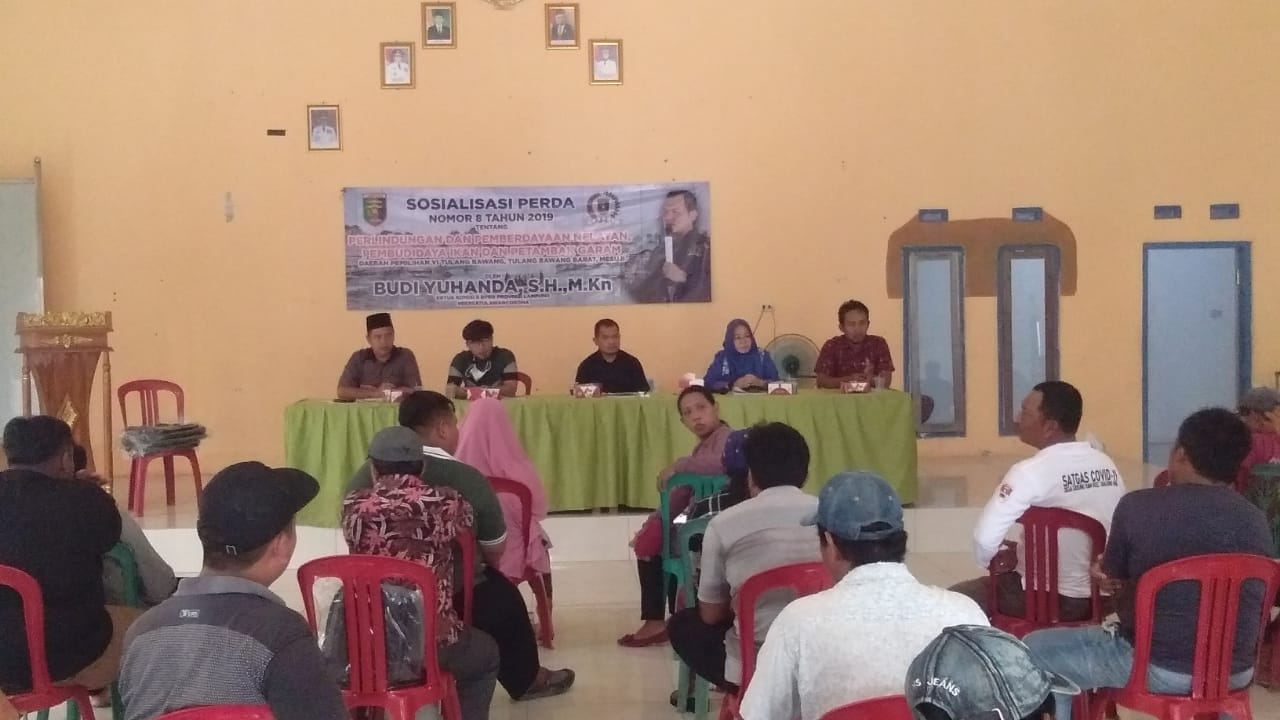 Anggota DPRD provinsi Lampung wakil komisi V fraksi Nasdem Budi Yohanda adakan kegiatan sosialisasi peraturan daerah nomor 8 tahun 2019 tentang perlindungan dan pemberdayaan nelayan, pembudidaya ikan dan tambak garam di balai desa Gedung Ram kecamatan Tanjung Raya kabupaten Mesuji. Jumat, 4/11/2022