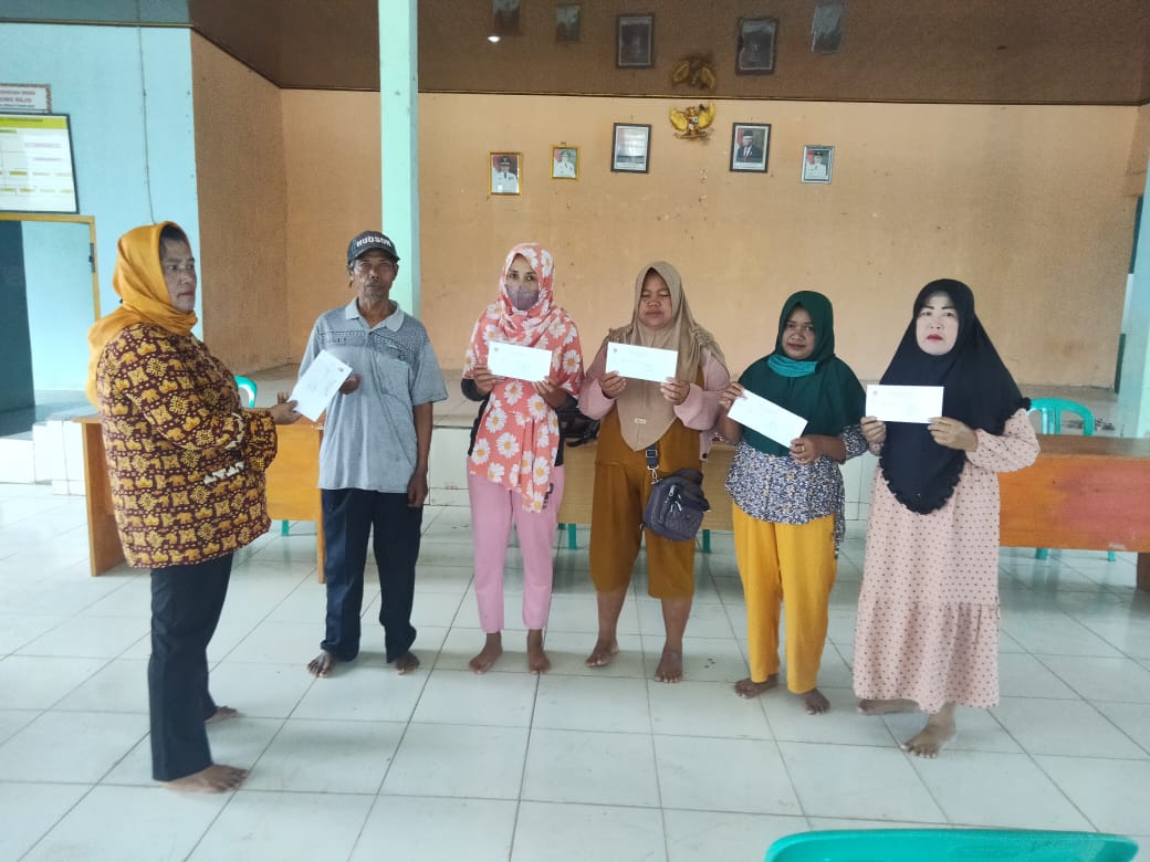 Aparatur Desa Panggung Rejo, ,Kecamatan Rawajitu Utara,Kabupaten Mesuji,Membagikan Bantuan Langsung Tunai Dana Desa(BLT DD)tahap 4,kepada 91 Keluarga Penerima Manfaat(KPM)di Balai Desa setempat,Kamis 28/12/2022.