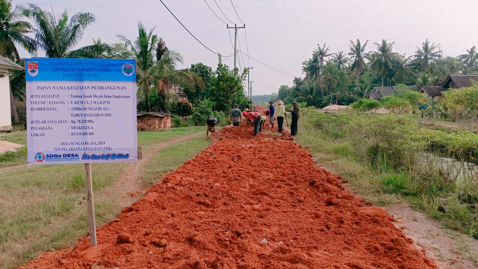 Dengan adanya Anggaran Pendapatan Belanja Desa(APBDes)tahun 2024 Desa Sungai Buaya,Kecamatan Rawajitu Utara,Kabupaten Mesuji,Aparatur Desa setempat memperuntukan anggaran tersebut untuk perbaikan Badan Jalan lingkungan menggunakan timbunan tanah merah.