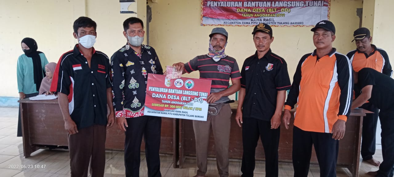 Kecamatan Rawapitu,Kabupaten Tulang bawang,Salurkan BLT DD (Bantuan Langsung Tunai Dana desa)tahap ll Untuk bulan April sampai bulan Juni ke 105 KPM(Keluarga Penerima Manfaat)Bertempat Kampung setempat.Kamis 23/6/2022.