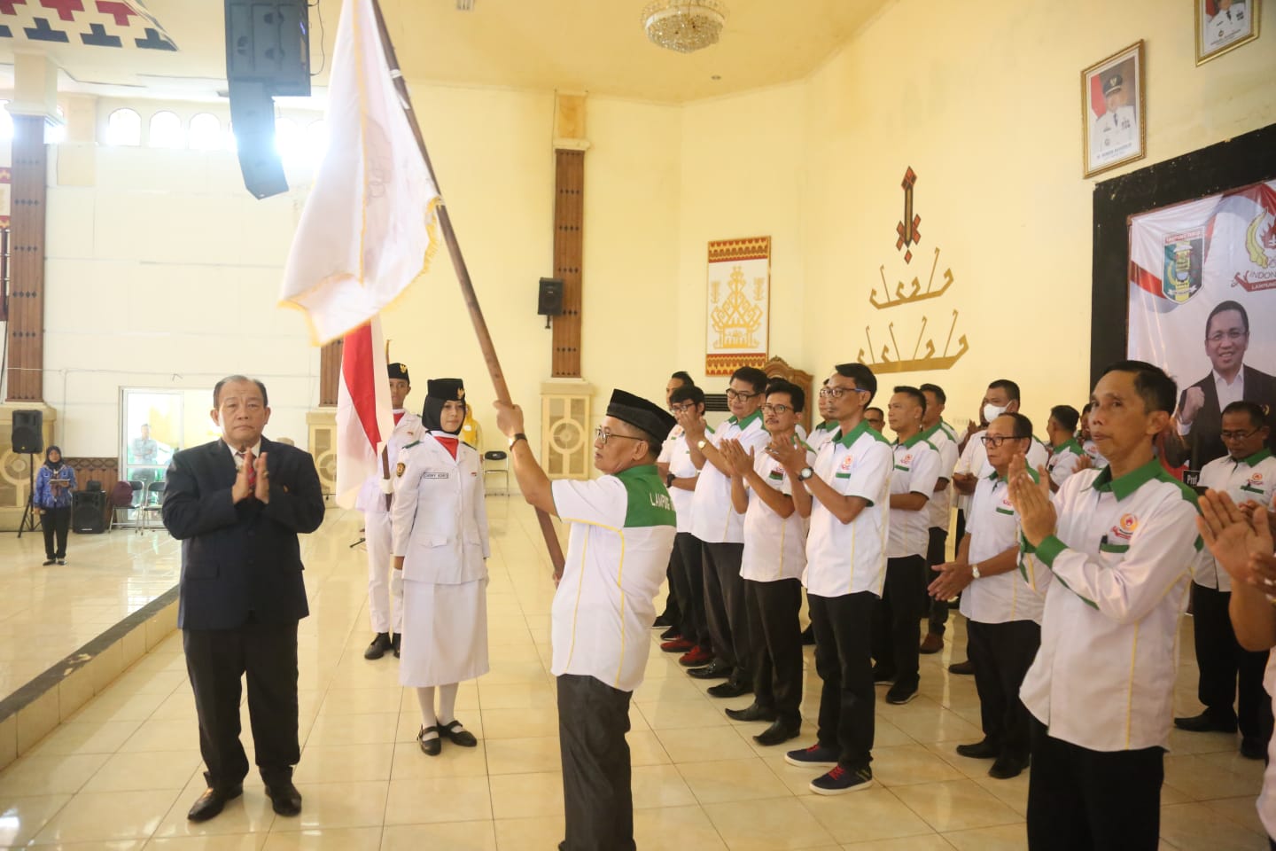 Bupati Lampung Timur M Dawam Rahardjo Memberi Sambutan dalam Acara Pelantikan Pengurus Olahraga Indonesia (KONI) Kabupaten Lampung Timur Masa Bakti 2022-2026 yang dilaksanakan di Gedung Pusiban Kabupaten Lampung Timur, Senin (19/09/2022).