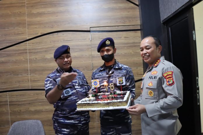 Detikinvestigasi.com.Bandar Lampung – Polresta Bandar Lampung terus mendapatkan ucapan secara langsung yang datang Ke Mako Polresta Bandar Lampung setelah sebelumnya pada pagi hari di sambangi oleh Dan Brigif 4, siang hari Pukul 13.30 Wib Polresta Bandar Lampung disambangi oleh Komandan Pangkalan TNI Angkatan Laut (Danlanal) Lampung Letkol Laut (P) Zul Fahmi.