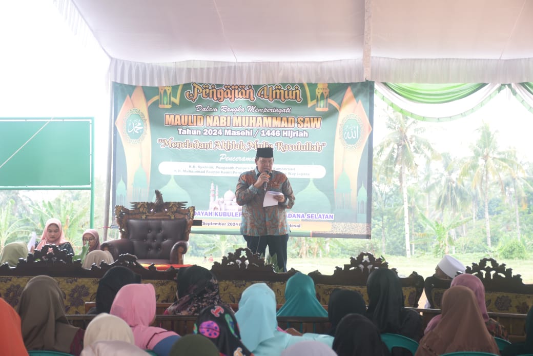 Dalam rangka memperingati hari Maulid Nabi Muhammad SAW Tahun 2024 Masehi/ 1446 Hijiriah, Berteman “Meneladani Akhlak Mulia Rasullullah” pengajian tersebut di Masjid Al-Hidayah Kubulepuk Atas Sukadana Selatan, Kecamatan Sukadana, Kabupaten Lampung Timur. Senin (16/9/24).