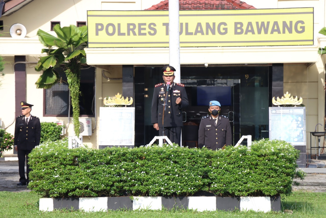 Polres Tulang Bawang, Polda Lampung, menggelar upacara memperingati Hari Kesaktian Pancasila, yang berlangsung hari Sabtu (01/10/2022), pukul 07.30 WIB, di lapangan Mapolres setempat.