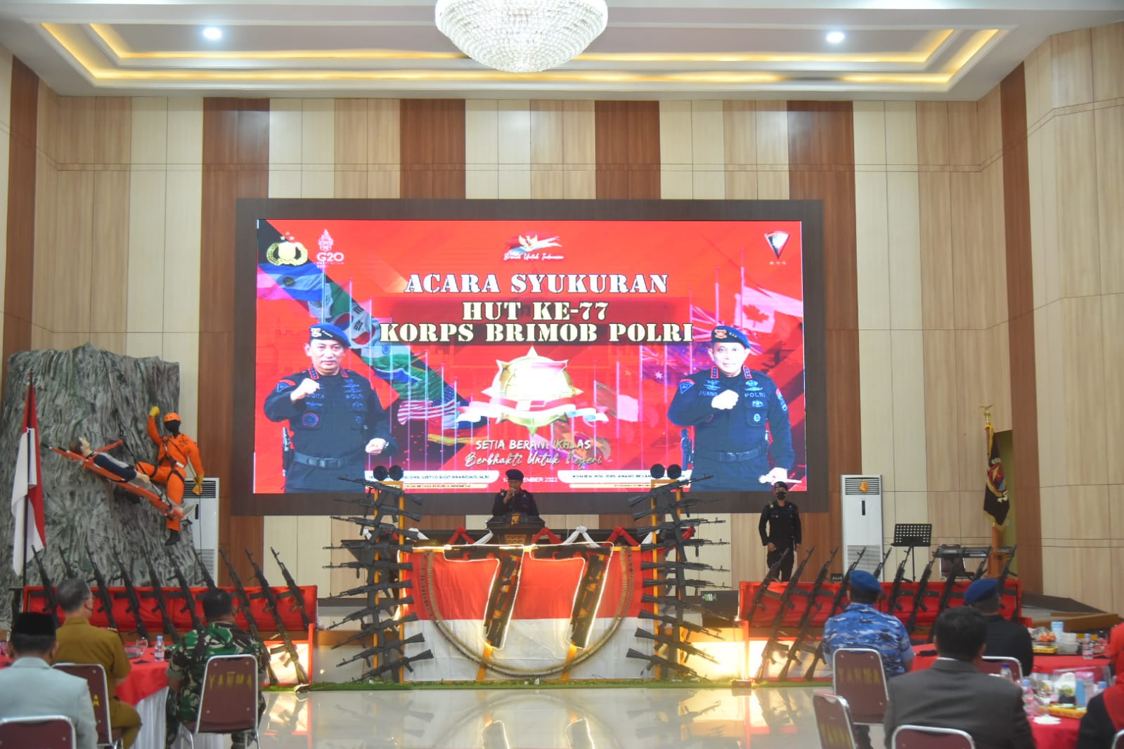 Rangkaian kegiatan HUT Brimob Ke-77 Ini juga bertepatan dengan pelaksanaan kegiatan KTT G-20 yang diselenggarakan di Bali sehingga perayaan HUT Brimob ini di fokuskan pada kegiatan pensucian Pataka dan syukuran.