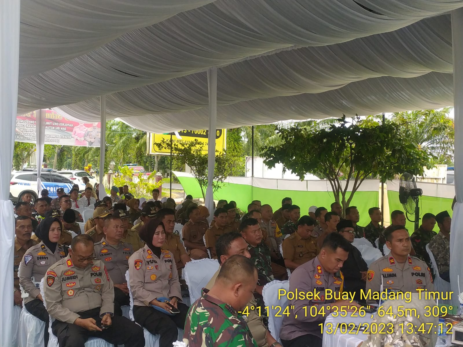 Turut hadir dalam acara tersebut Kapolres OKU Timur, AKBP Dwi Agung Setyono, S.I.K., M.H.Kabag Ops Polres OKU Timur, Kompol Alex Andrian, S.Kom.Kabag Logistik Polres OKU Timur, Kompol Mulyadi, S.E.Kasat Samapta Polres OKU Timur, AKP Jumeidi, S.H.Kasi Propam Polres OKUT, AKP Yuli.Kasi Humas Polres OKU Timur, AKP H. Edi Arianto.Kanit Reg Iden Polres OKU Timur, IPDA Desi Anggraini, S.H.Kapolsek Buay Madang Timur Iptu Alimin, SH Danramil 05 Buay Madang Kapten (Inf) Kasimin, Kasi, Kanit dan Anggota Polsek Buay Madang Timur, Ketua Bhayangkari Cab. OKU Timur, Ny. Prativi Dwi Agung beserta Pengurus Bhayangkari Cab. OKU Timur, Ketua Bhayangkari Ranting Polsek Buay Madang Timur, Ny. Holisah Alimin beserta Bhayangkari Polsek Buay Madang Timur Camat Buay Madang Timur Bpk. M. Andrei, S.IP, Kepala KUA Kecamatan BMT, Ka. UPTD Puskesmas Rawabening Kec. BMT, Para Kades Sekecamatan BMT, Tokoh Agama, Tokoh Adat dan Tokoh Masyarakat Sekecamatan BMT, Para wartawan Media Online.