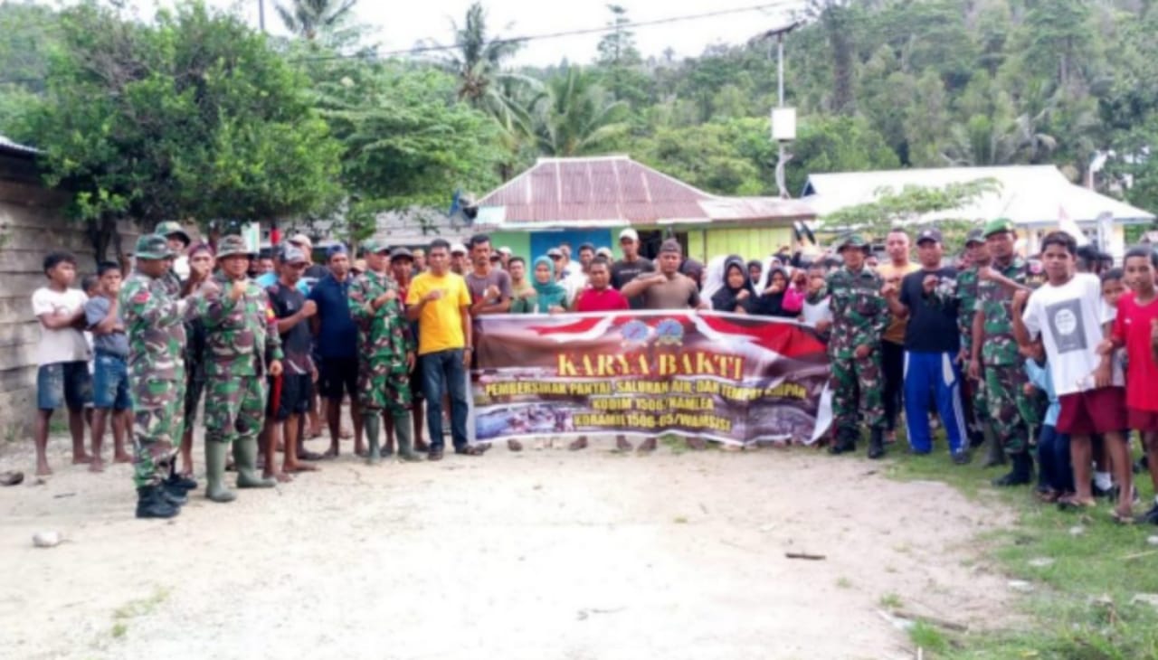 Pelaksanaan kegiatan Karya Bakti anggota Koramil 1506-05/Wamsisi beserta masyarakat Desa Pohon Batu,Kecamatan Waesama, Kabupaten Buru Selatan.Jumat 26/1/2024.