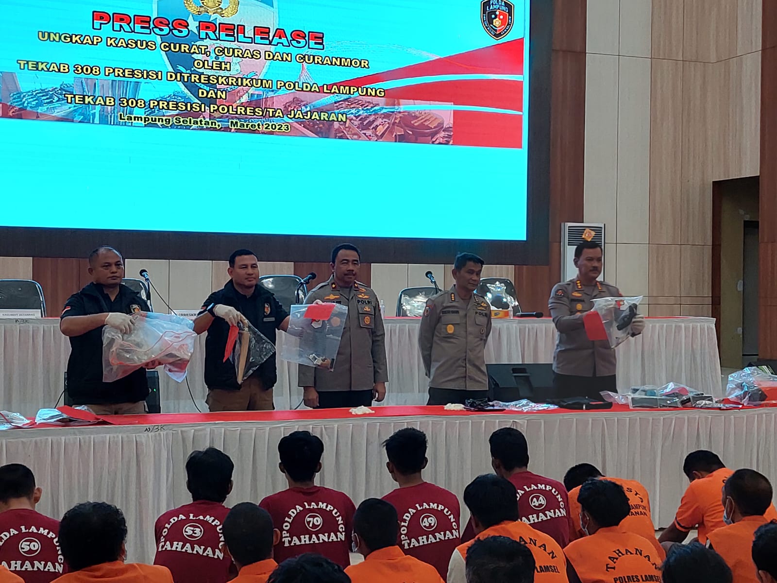 Dalam kurun waktu satu bulan,Polda Lampung tahan 123 orang tersangka dengan kasus seperti,Pencurian Dengan Kekerasan, Pencurian Dengan Pemberatan, dan Pencurian Kendaraan Bermotor (C3), pada Senin (20/3/2023).