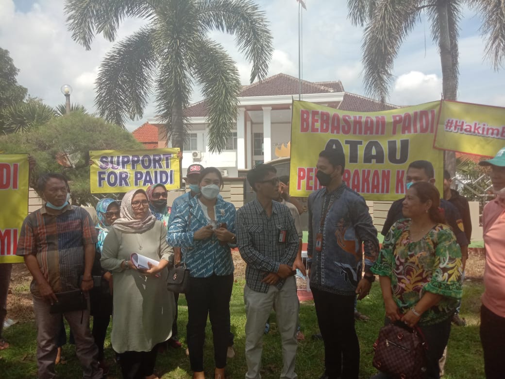 Dengan adanya pantauan dari berbagai awak media di lapangan,dilokasi tersebut puluhan ibu-ibu dan kelurga kerabat paidi melalakukan Aksi moral didepan kantor pengadilan nengri menggala sambil membawa spanduk yang tulisan memintak kepada hakim bebaskan paidi.