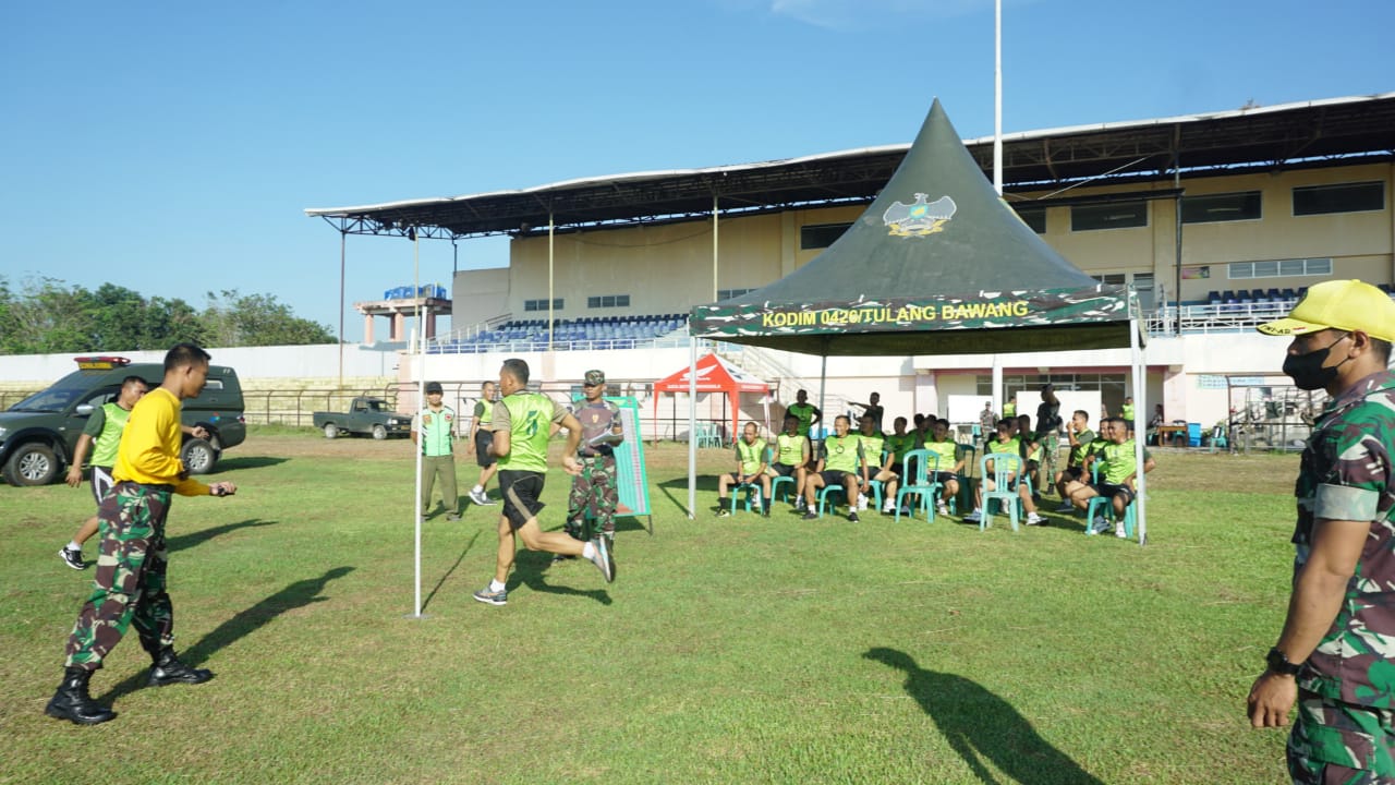 TULANG BAWANG – Kodim 0426/Tulang Bawang gelar tes Kesegaran Jasmani (Garjas) Periodik Semester I TA 2022, di Stadion Tiuh Toho Jl. Lintas Timur Sumatera Kp. Bujung Tenuk Kec. Menggala Kab. Tulang Bawang Senin s/d Selasa (23 s/d 24 Mei 2022)