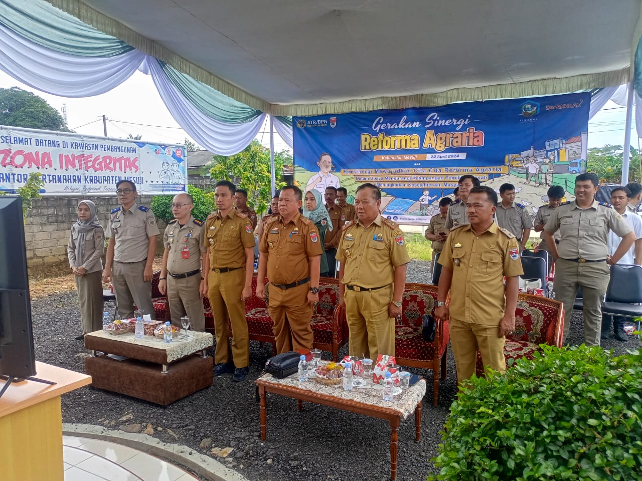 ATR/Badan Pertanahan Nasional Kantah Agraria Kabupaten Mesuji Lampung mengadakan Nonton bareng (Nobar) Gerakkan Senergi Reforma Agraria Se-indonesia dihalaman Kantor Agraria Kabupaten Mesuji Desa Simpang-Mesuji 22 April 2024.