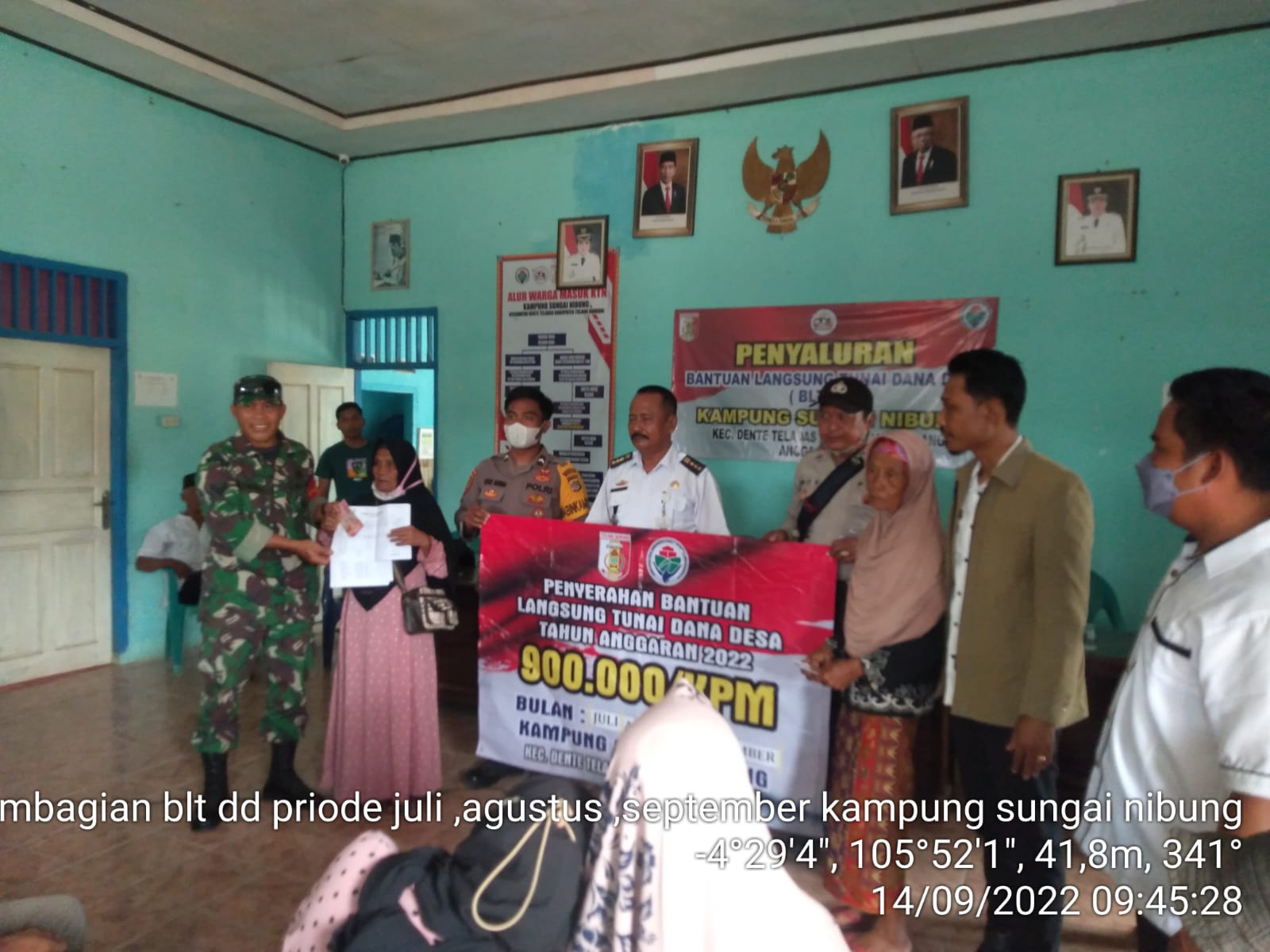 Percepatan penyaluran Bantuan Langsung Tunai Dana Desa(BLT-DD)Tahap 3 yang bersumber dari anggaran Dana Desa (DD)tahun 2022 ini,telah di salurkan oleh Aparatur Kampung Sungai Nibung ke-184 Keluarga Penerima Manfaat(KPM)Warga Kampung Sungai Nibung Kecamatan Dente Teladas,kabupaten Tulang Bawang,Di Balai Desa setempat,”Rabo 14/9/2022.