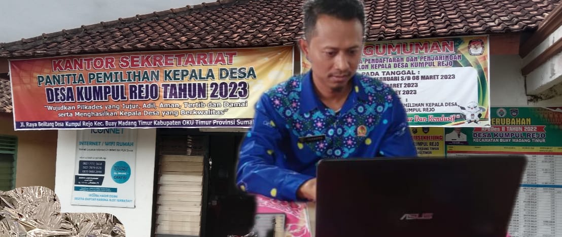 Panitia Pemilihan Kepala Desa (Pilkades) Tahun2023.Desa Kumpul Rejo Kecamatan Buay Madang Timur kabupaten Oku Timur Sumsel sudah memasuki tahapan 1 dan sampai hari ini masih 2 orang Calon yang mengambil berkas persyaratan Rabo”.02/03/2023.