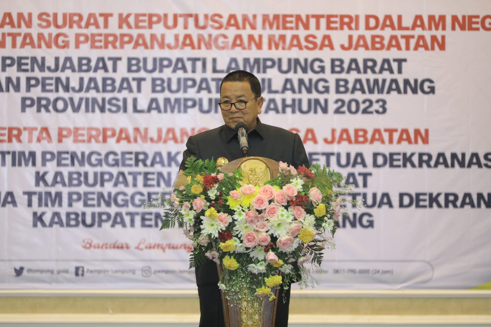 Beliau menyampaikan bahwa Pj Bupati Tulang Bawang dan Pj Bupati Lampung Barat di perpanjang sebagai Pj Bupati di wilayahnya masing masing karena mereka di nilai mampu memajukan dan memberikan kontribusi serta banyak perubahan positif pada Kabupaten yang dipimpin nya.