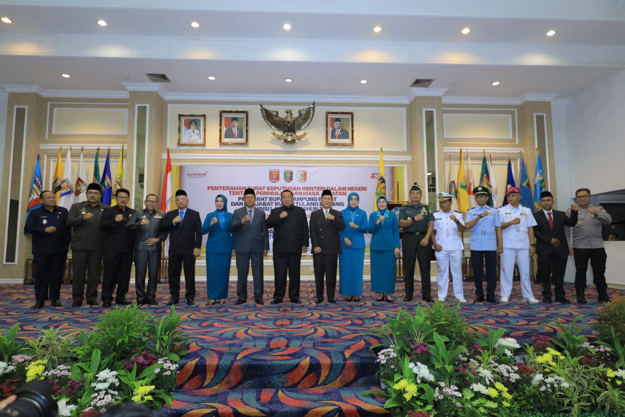 Dalam kesempatan ini Gubernur Lampung bapak Ir Arinal Djunaidi menyerahkan 2 SK Pj Bupati yakni Kabupaten Tulang dan Kabupaten Lampung Barat. Selanjutnya beliau juga menyerahkan SK Penjabat Ketua TP PKK / Pj. Ketua Dekranasda Kabupaten Tulang Bawang dan Lampung Barat.