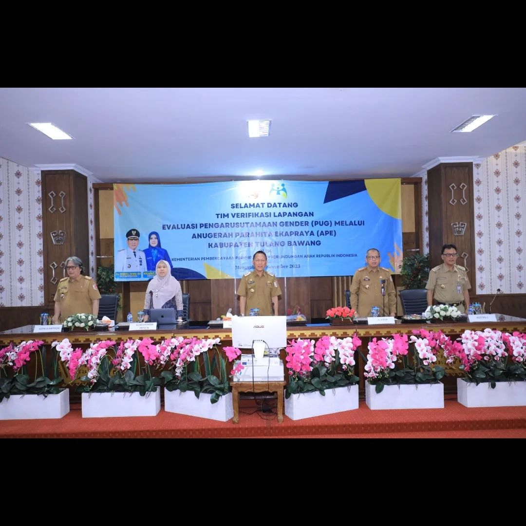 Detikincestigasi.com Tulang Bawang – Penjabat Bupati Tulang Bawang bapak Drs Qudratul Ikhwan MM Menghadiri Kegiatan Acara Verifikasi Lapangan Anugerah Parahita Ekapraya (APE) Dalam Rangka Penyelenggaraan Pengarusutamaan Gender (PUG) Tahun 2023 Kabupaten Tulang Bawang Di Lantai II Kantor Sekdakab Tulang Bawang, Provinsi Lampung, Selasa (21/11/2023)
