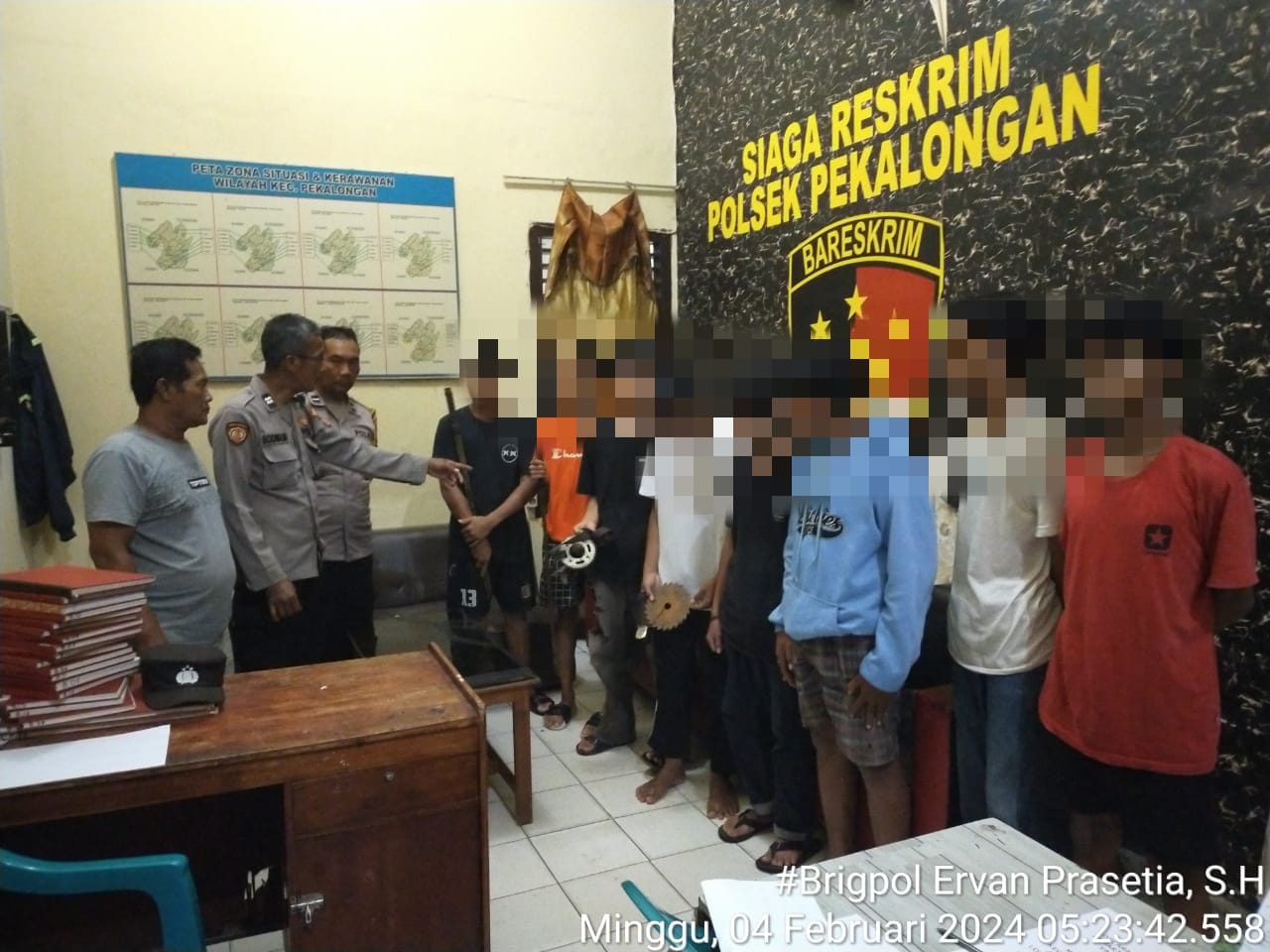 Para remaja yang diamankan tersebut, berinisial DF (16), GL (16), ND (16), WS (15), EA (17), RD (16), AF (17), RS (16), FF (13), TB (15), OF ((16), RG (16), dan AD (18) warga Kecamatan Pekalongan.