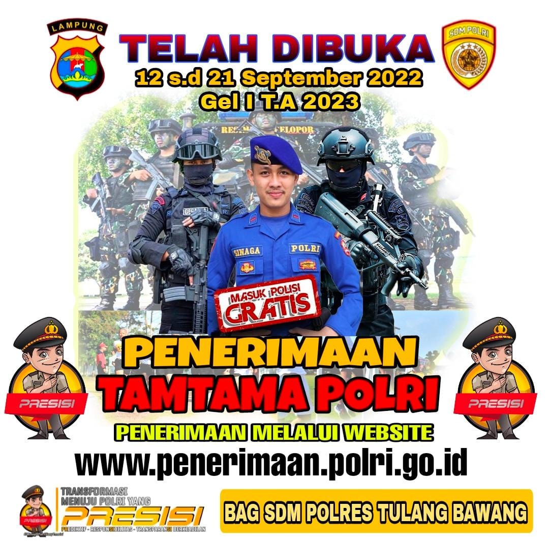 Lanjut Kompol Yaya, pendaftaran calon Tamtama ini mulai dibuka tanggal 12-21 September 2022 melalui website www.penerimaan.polri.go.id atau bisa datang langsung ke Bag SDM Polres Tulang Bawang, Polda Lampung.