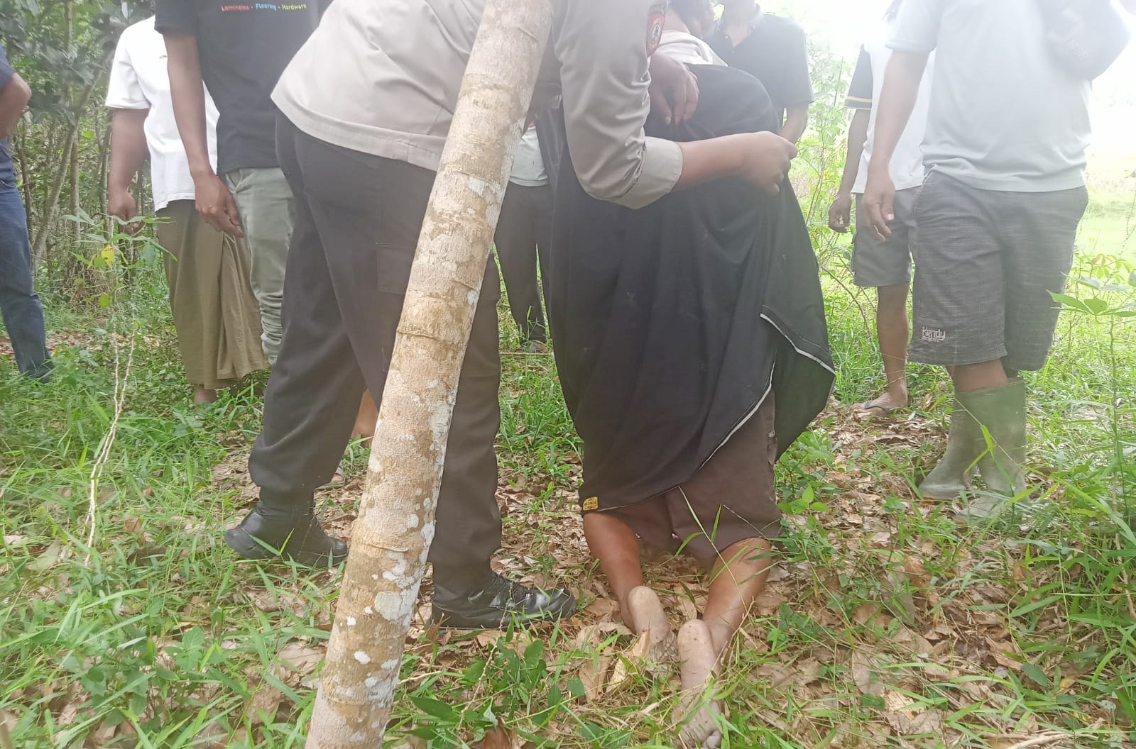 Polsek Banjar Agung Olah TKP Penemuan Mayat Tergantung Di Pohon Jengkol