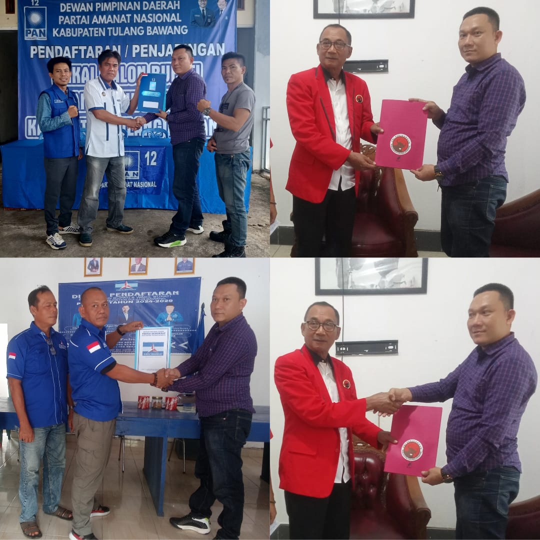 Richard Maulana Putra. SH. MH kembalikan berkas formulir pendaftaran bakal calon Bupati Tulang Bawang periode 2024 – 2029 di PDI Perjuangan, PAN dan Demokrat. Pengembalian berkas itu berlangsung hari ini (Jum’at 09/05), pada masing – masing sekretariat ketiga partai politik wilayah tersebut.