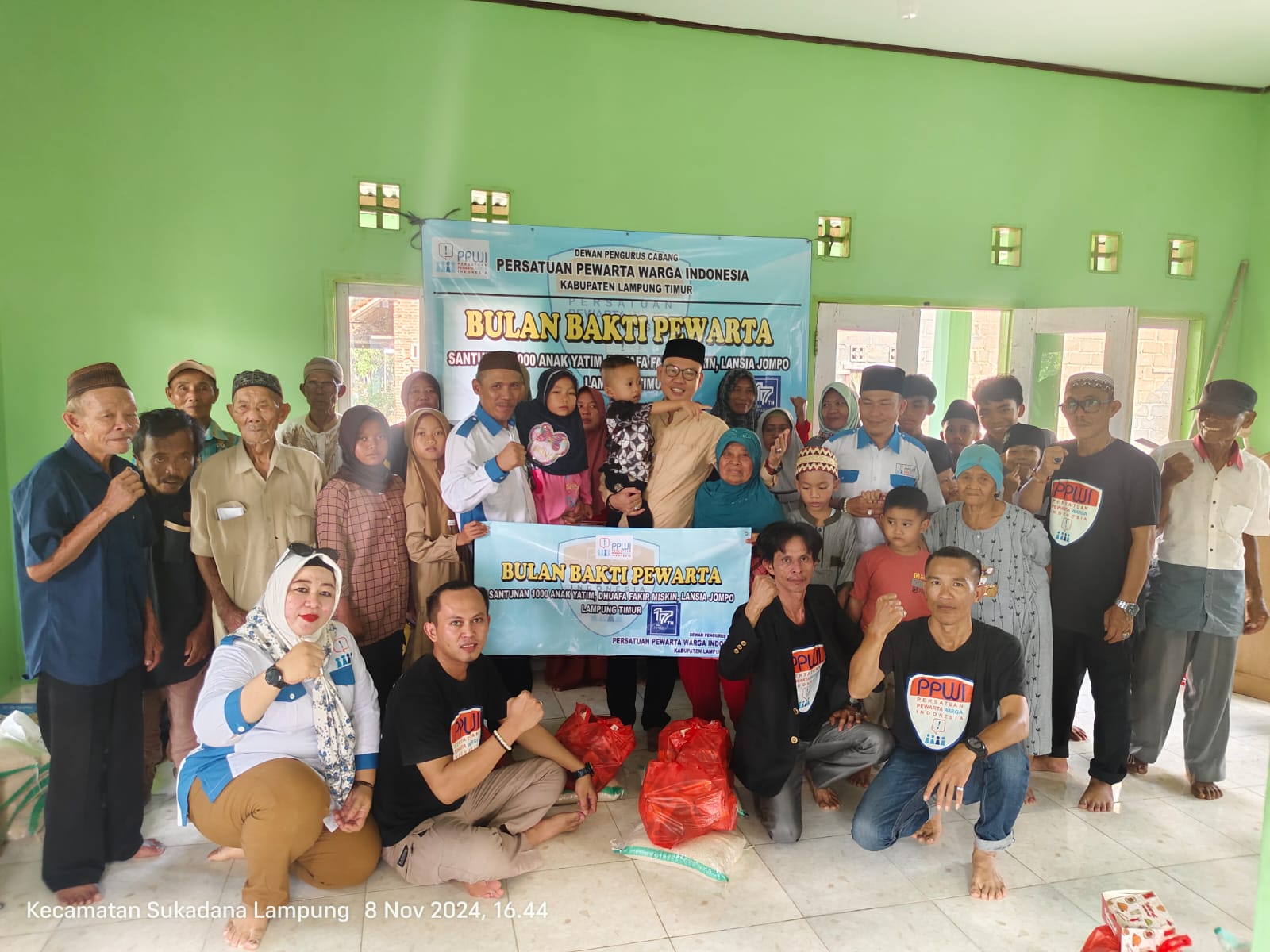 Detikonvestigasi.com.Lampung Timur – Dalam rangka menyambut Hari Ulang Tahun Persatuan Pewarta Warga Indonesia (HUT PPWI) yang ke-17 Tahun, DPC PPWI Kabupaten Lampung Timur mengadakan kegiatan sosial kemanusiaan dengan Tema “Bulan Bakti Pewarta” Santunan 1000 Anak Yatim, Fakir Miskin, Lansia jompo dhuafa. Pemberian santunan ini dilaksanakan dengan cara mengumpulkan penerima santunan secara massal dan mobile atau mendatangi dari rumah ke rumah (door to door).