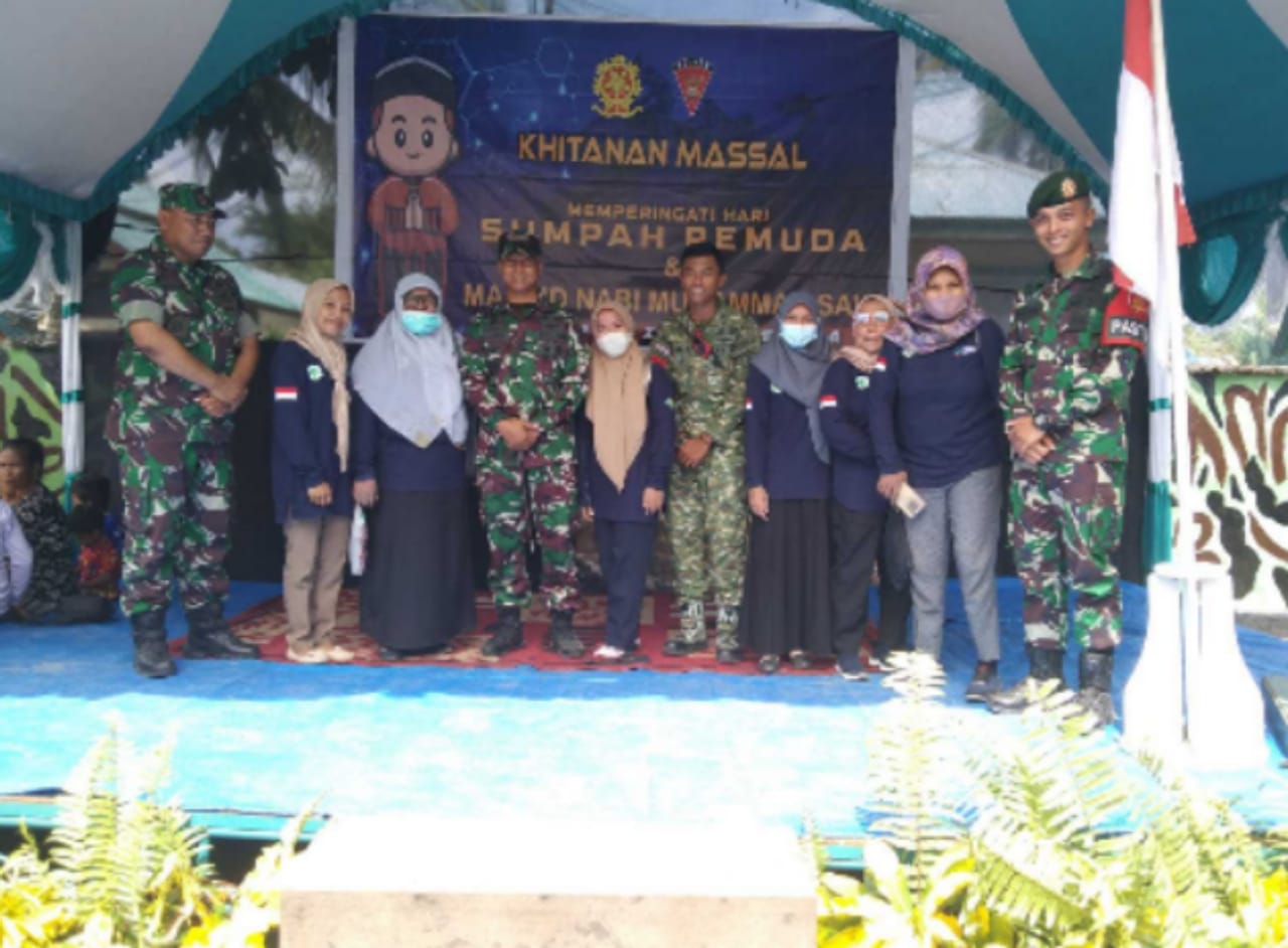 Dalam rangka memperingati Maulid Nabi Muhammad SAW Satgas Satuan Yonarmed 1 Kostrad Pos Ramil Wamsisi gelar kegiatan Sunatan Masal. Sabtu 29/10/22