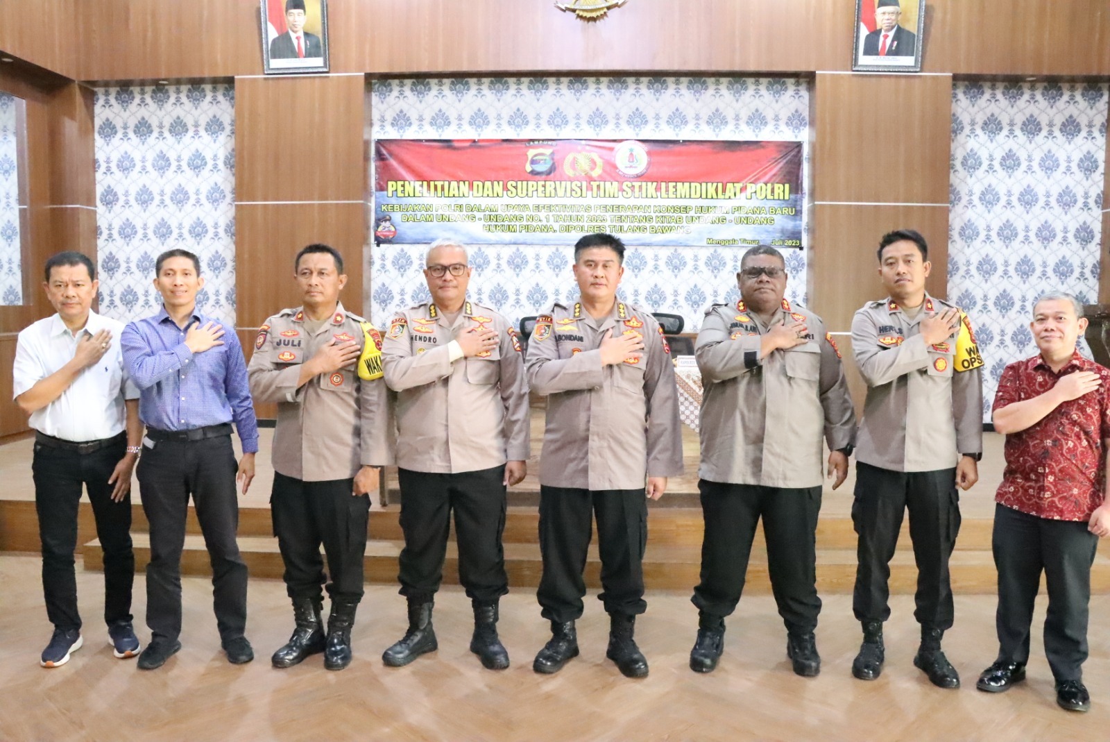 Sekolah Tinggi Ilmu Kepolisian (STIK) Lembaga Pendidikan dan Pelatihan Kepolisian Negara Republik Indonesia (Lemdiklat Polri) melakukan penelitian dan supervisi terkait efektivitas penerapan konsep hukum pidana baru dalam Undang-Undang Nomor 1 Tahun 2023 tentang KUHPidana, di Polres Tulang Bawang, Polda Lampung, Kamis (13/07/2023), pukul 09.00 WIB s/d pukul 11.00 WIB.